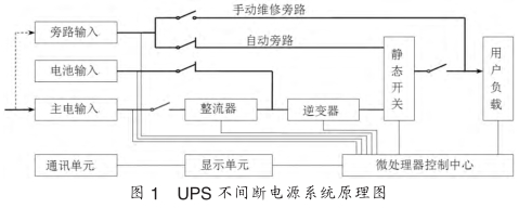 UPS是一個(gè)多重保護(hù)的交流供電設(shè)備。當(dāng)主電正常時(shí),主電輸入經(jīng)整流開關(guān)控制,首先經(jīng)諧波濾波器,再經(jīng)主電整流變換成純凈的直流電,濾除主電中的干擾,然后通過逆變器將直流電變換成純凈的正弦交流電輸出,同時(shí)給蓄電池充電;當(dāng)UPS連接上電池組時(shí)對(duì)電池組的電壓和電池進(jìn)行測(cè)量,整流器進(jìn)入電流和電壓雙環(huán)控制,當(dāng)電池電壓低時(shí)為恒流模式充電,當(dāng)電池電壓達(dá)到浮充電電壓時(shí),自動(dòng)轉(zhuǎn)為恒壓充電模式。當(dāng)主電異常時(shí),則將蓄電池儲(chǔ)存的直流電逆變成交流輸出,保證用戶負(fù)載長(zhǎng)期處于不斷電高質(zhì)量電源下可靠運(yùn)行;當(dāng)逆變器關(guān)閉或故障時(shí)則自動(dòng)轉(zhuǎn)為旁路供電。手動(dòng)維修旁路保證在不斷電的情況下對(duì)UPS進(jìn)行維護(hù)或檢修。